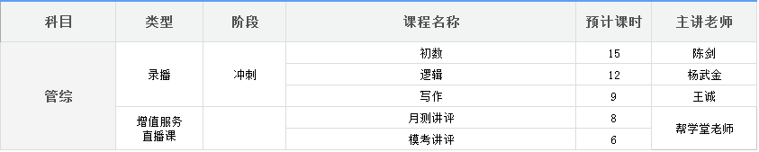 - 所授科目: 管综数学、经综数学。